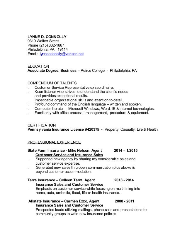 Insurance Resume Example Sample