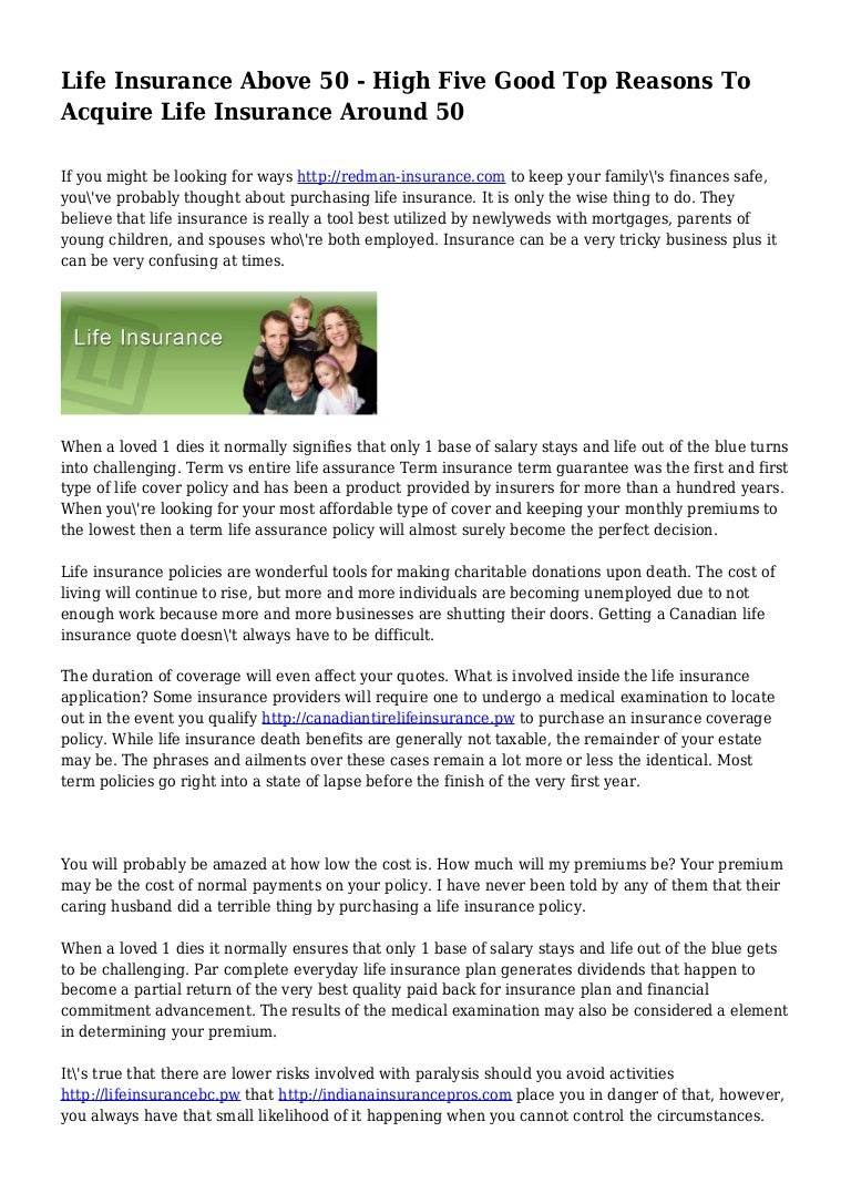 Life Insurance Above 50 High Five Good Top Reasons To Acquire Life